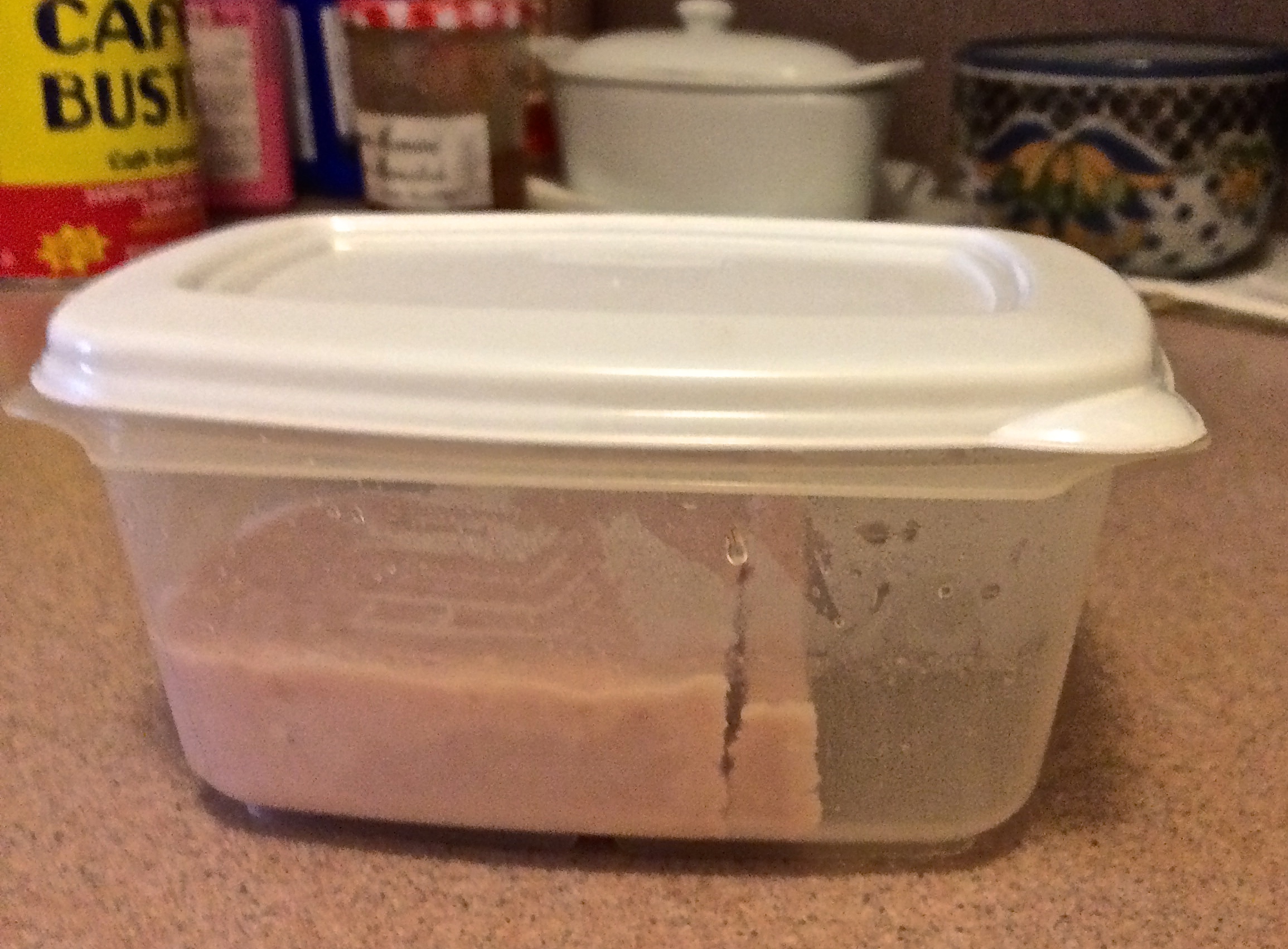 - Pour into (ideally) a mini loaf pan, but any smallish container will do in a pinch. [See image below–a Rubbermaid 3.2 cup container].